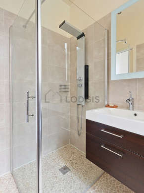 Este apartamento tiene una sala de baño magnífica y muy clara with ventanas doble acristalamiento. Este baño tiene todo lo necesario para su bienestar diario : toallas, armario empotrado, ducha, bañera de hydromasaje, secador de pelo, radiador seca-toallas. El WC está separado de la sala del baño y ubicado en un espacio independiente.