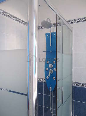Este apartamento tiene una sala de baño agradable y clara with ventanas doble acristalamiento. Este baño tiene todo lo necesario para su bienestar diario : toallas, estantería, armario empotrado, secador de pelo, ducha hydromasage, sink, radiador seca-toallas. El WC está separado de la sala del baño y ubicado en un espacio independiente.