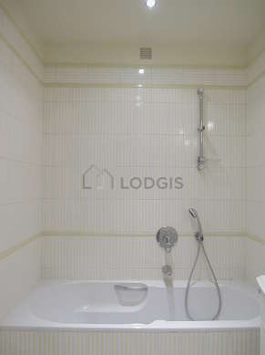Este apartamento tiene una sala de baño agradable. Este baño tiene todo lo necesario para su bienestar diario : toallas, armario empotrado, bañera, secador de pelo, sink, mirror, radiador seca-toallas. El WC está separado de la sala del baño y ubicado en un espacio independiente.