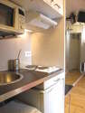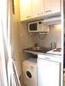 Este apartamento posee una bonito cocina con parquet en el sueloy todo el equipamiento indispensable para su vida diaria : placas eléctricas, refrigerador, micro ondas, congelador, campana extractora, tostador, armario empotrado, vajilla.