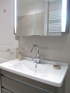 Este apartamento tiene una sala de baño magnífica y clara. Este baño tiene todo lo necesario para su bienestar diario : toallas, armario empotrado, bañera, ducha, secador de pelo, radiador seca-toallas. El WC está separado de la sala del baño y ubicado en un espacio independiente.