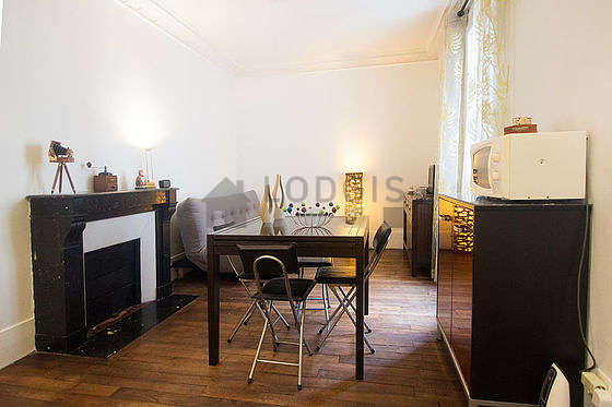 Este apartamento está formado por un salón con parquet en el suelo y ventanas doble acristalamiento y una vista a al patio. Este salón tranquilo está amueblado y equipado para que su estancia sea agradable : televisor, mesa, armario, 4 silla(s)1 sofá cama.