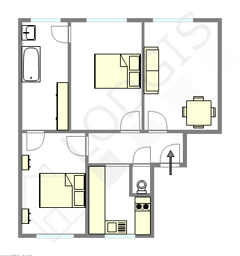 Este apartamento tiene una sala de baño with ventanas doble acristalamiento. Este baño tiene todo lo necesario para su bienestar diario : toallas, armario empotrado, bañera. El WC está separado de la sala del baño y ubicado en un espacio independiente.