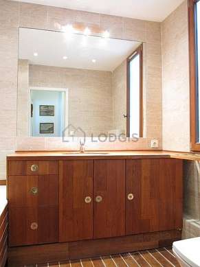 Este apartamento tiene una sala de baño agradable y clara with ventanas doble acristalamiento. Este baño tiene todo lo necesario para su bienestar diario : toallas, armario empotrado, bañera. El WC está integrado en la sala del baño.