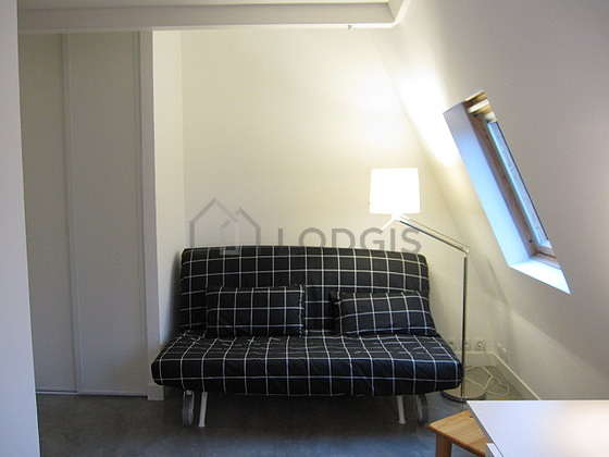 Este apartamento está formado por un salón con cemento en el suelo y ventanas doble acristalamiento y una vista a al patio. Este salón tranquilo está amueblado y equipado para que su estancia sea agradable : sábanas, edredones, mesa, mesita, ropero, armario empotrado, 1 silla(s), taburete1 sofá cama.