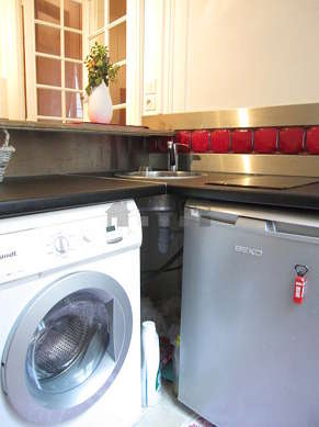 Este apartamento posee una bonito cocina con azulejo en el sueloy todo el equipamiento esencial para su vida diaria : placas eléctricas, refrigerador, congelador, hervidor, cafetera, armario empotrado, vajilla.