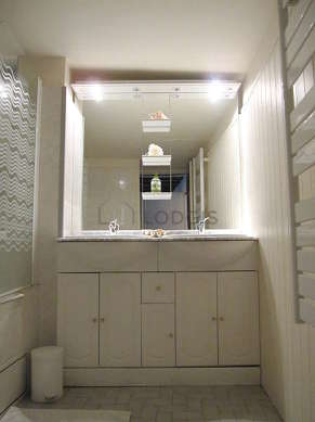 Este apartamento tiene una sala de baño. Este baño tiene todo lo necesario para su bienestar diario : toallas, estantería, armario empotrado, bañera, secador de pelo, radiador seca-toallas. El WC está separado de la sala del baño y ubicado en un espacio independiente.