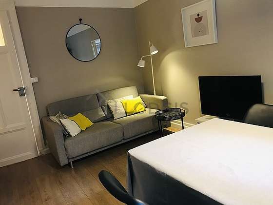 Este apartamento está formado por un salón con parquet en el suelo y ventanas y una vista a al patio. Este salón muy tanquilo está amueblado y equipado para que su estancia sea agradable : televisor, sábanas, edredones, mesa, mesita, mesa de estudio, ropero, estantería, armario empotrado, 2 silla(s)1 sofá cama.