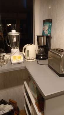 Este apartamento posee una bonito cocina con azulejo en el sueloy todo el equipamiento esencial para su vida diaria : placas eléctricas, refrigerador, congelador, horno, micro ondas, campana extractora, tostador, hervidor, cafetera, armario empotrado, vajilla.