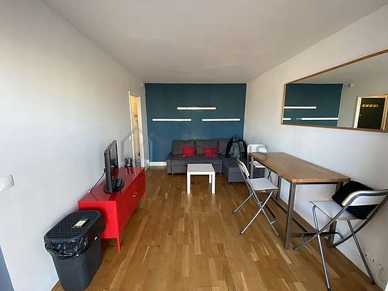 Este apartamento está formado por un salón con parquet en el suelo y ventanas doble acristalamiento, un balcon y una vista a jardín. Este salón tranquilo está amueblado y equipado para que su estancia sea agradable : televisor, sábanas, edredones, ropero, estantería, cómoda, armario empotrado, 3 silla(s), bar1 sofá cama.