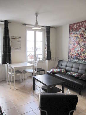 Este apartamento está formado por un salón con azulejo en el suelo y ventanas doble acristalamiento y una vista a al patio. Este salón tranquilo está amueblado y equipado para que su estancia sea agradable : televisor, sábanas, edredones, 1 sillones, mesa, mesita, estantería, armario empotrado, 2 silla(s)1 sofá cama.