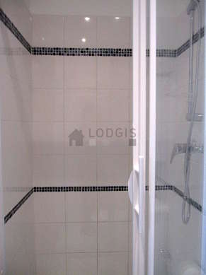Este apartamento posee una cocina con azulejo en el sueloy todo el equipamiento indispensable para su vida diaria : placas eléctricas, refrigerador, micro ondas, congelador, campana extractora, hervidor, mesa, estantería, armario empotrado, vajilla, 2 silla(s), bar.