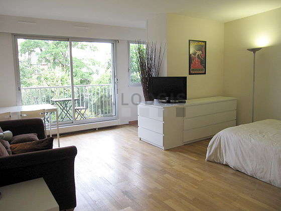 Este apartamento está formado por un salón con parquet en el suelo y ventanas doble acristalamiento, un balcon y una vista a jardín. Este salón está amueblado y equipado para que su estancia sea agradable : televisor, sábanas, edredones, mesa, ropero, cómoda, armario empotrado, 4 silla(s), mesita de noche1 sofá cama, 1 cama.