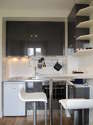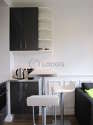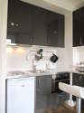 Este apartamento posee una bonito cocina con parquet en el sueloy todo el equipamiento esencial para su vida diaria : placas eléctricas, refrigerador, horno micro-ondas, congelador, campana extractora, hervidor, cafetera, armario empotrado, vajilla, taburete, bar.