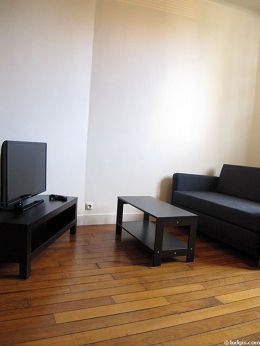Este apartamento está formado por un salón con parquet en el suelo y ventanas doble acristalamiento y una vista a al patio. Este salón muy tanquilo está amueblado y equipado para que su estancia sea agradable : televisor, sábanas, edredones, mesa, mesita, taburete1 sofá cama.