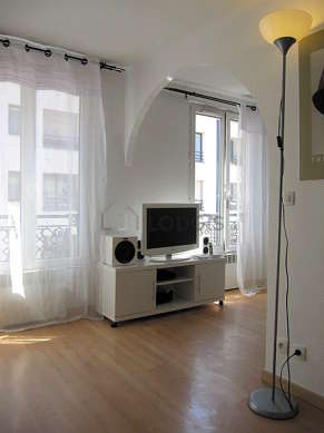 Este apartamento está formado por un salón con parquet en el suelo y ventanas doble acristalamiento y una vista a la calle. Este salón tranquilo está amueblado y equipado para que su estancia sea agradable : televisor, sábanas, edredones, 1 sillones, mesita, estantería, armario empotrado, taburete1 sofá cama.