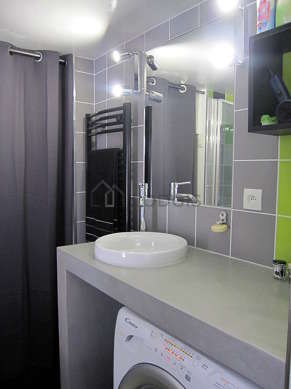 Este dúplex tiene una sala de baño magnífica y clara with ventanas. Este baño tiene todo lo necesario para su bienestar diario : toallas, estantería, armario empotrado, bañera, secador de pelo, radiador seca-toallas. El WC está separado de la sala del baño y ubicado en un espacio independiente.