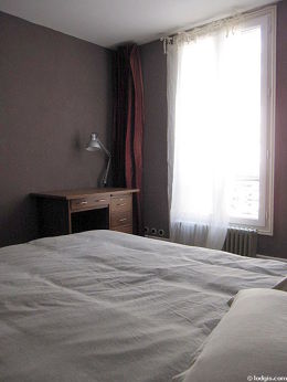 Con parquet en el suelo y ventanas doble acristalamiento y una vista a al patio, esta habitación acogedora ofrece el equipamiento necesario para descansar durante su estancia : sábanas, edredones, mesa de estudio, ropero, estantería, taburete1 cama.