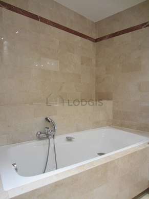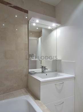 Este apartamento tiene una sala de baño agradable y clara. Este baño tiene todo lo necesario para su bienestar diario : toallas, estantería, armario empotrado, bañera, sink, radiador seca-toallas. El WC está separado de la sala del baño y ubicado en un espacio independiente.