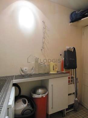 Este apartamento posee una cocina con azulejo en el sueloy todo el equipamiento indispensable para su vida diaria : placas eléctricas, refrigerador, horno, congelador, tostador, hervidor, armario empotrado, vajilla.
