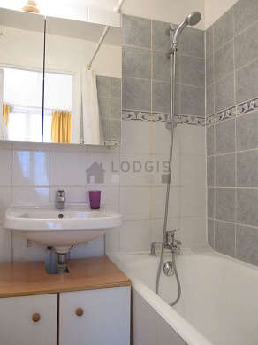 Este apartamento posee una cocina con azulejo en el sueloy todo el equipamiento indispensable para su vida diaria : placas eléctricas, refrigerador, micro ondas, congelador, hervidor, cafetera, estantería, armario empotrado, vajilla.