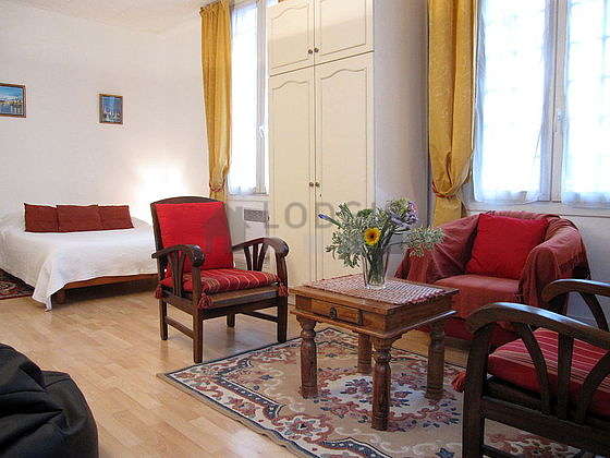Este apartamento está formado por un salón con parquet en el suelo y ventanas doble acristalamiento. Este salón tranquilo está amueblado y equipado para que su estancia sea agradable : sábanas, edredones, 3 sillones, mesa, mesita, mesa de estudio, estantería, armario, 1 silla(s), taburete, mesita de noche1 cama.