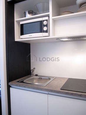 Este apartamento posee una bonito cocina con parquet en el sueloy todo el equipamiento indispensable para su vida diaria : placas eléctricas, refrigerador, micro ondas, congelador, campana extractora, tostador, hervidor, cafetera, armario empotrado, vajilla.