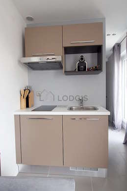 Este apartamento posee una magnífica cocina con azulejo en el sueloy todo el equipamiento esencial para su vida diaria : placas eléctricas, refrigerador, horno micro-ondas, congelador, campana extractora, tostador, hervidor, cafetera, armario empotrado, vajilla.