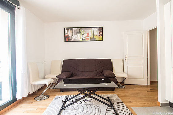 Este apartamento está formado por un salón con parquet en el suelo y ventanas doble acristalamiento, un balcon y una vista a al patio. Este salón muy tanquilo está amueblado y equipado para que su estancia sea agradable : televisor, sábanas, edredones, mesa, mesita, ropero, aparador, armario empotrado, 4 silla(s)1 sofá cama.
