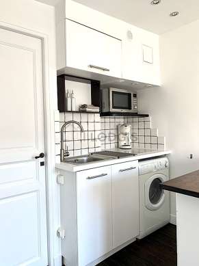 Este apartamento posee una bonito cocina con linoleum en el sueloy todo el equipamiento esencial para su vida diaria : placas eléctricas, refrigerador, micro ondas, congelador, cafetera, armario empotrado, vajilla.