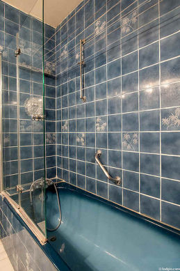 Este apartamento tiene una sala de baño agradable. Este baño tiene todo lo necesario para su bienestar diario : estantería, armario empotrado, bañera, radiador seca-toallas. El WC está separado de la sala del baño y ubicado en un espacio independiente.