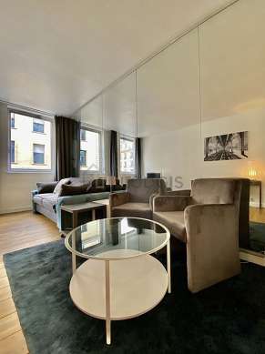 Este apartamento está formado por un salón con parquet en el suelo una vista a la calle. Este salón está amueblado y equipado para que su estancia sea agradable : televisor, sábanas, edredones, 1 sillones, mesa, mesita, mesa de estudio, ropero, estantería, armario empotrado, 2 silla(s), taburete1 sofá cama.