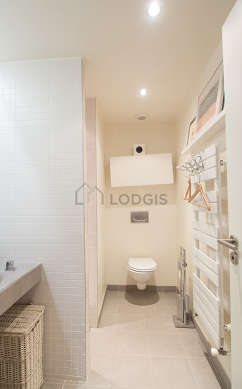 Este apartamento posee una magnífica cocina con parquet en el sueloy todo el equipamiento necesario para su vida diaria : placas eléctricas, refrigerador, congelador, horno, horno micro-ondas, campana extractora, hervidor, estantería, vajilla, taburete, bar.