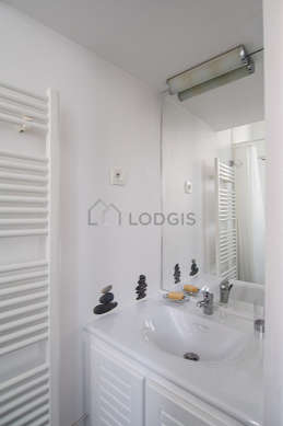 Este apartamento tiene una sala de baño agradable y clara with ventanas doble acristalamiento. Este baño tiene todo lo necesario para su bienestar diario : toallas, ducha, secador de pelo, radiador seca-toallas. El WC está separado de la sala del baño y ubicado en un espacio independiente.