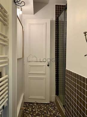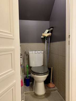 Este apartamento tiene una sala de baño agradable with ventanas. Este baño tiene todo lo necesario para su bienestar diario : toallas, ducha, secador de pelo, radiador seca-toallas. El WC está separado de la sala del baño y ubicado en un espacio independiente.