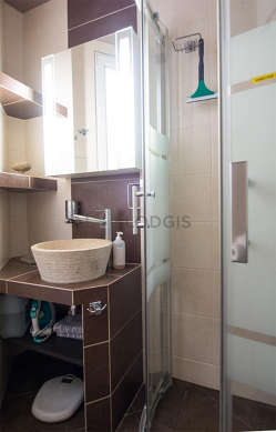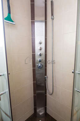 Este apartamento posee una bonito cocina con azulejo en el sueloy todo el equipamiento indispensable para su vida diaria : placas eléctricas, refrigerador, congelador, horno micro-ondas, congelador, campana extractora, tostador, hervidor, cafetera, armario empotrado, vajilla.