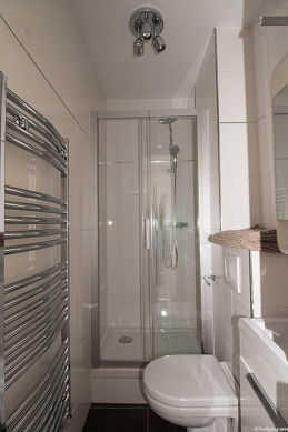 Este apartamento posee una bonito cocina con parquet en el sueloy todo el equipamiento necesario para su vida diaria : placas eléctricas, refrigerador, congelador, horno, micro ondas, campana extractora, tostador, cafetera, estantería, armario empotrado, vajilla.