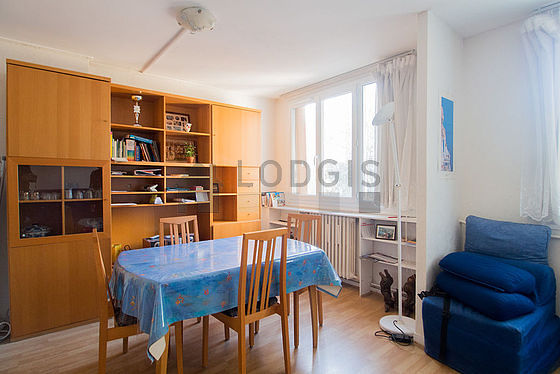 Este apartamento está formado por un salón con parquet en el suelo y ventanas doble acristalamiento y una vista a al patio. Este salón está amueblado y equipado para que su estancia sea agradable : televisor, sábanas, edredones, 1 sillones, mesa, estantería, armario empotrado, 4 silla(s)2 sofá cama(s), 1 sofá cama.