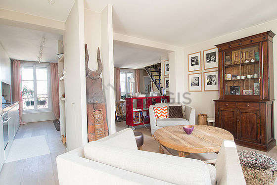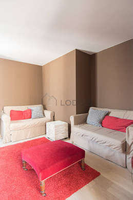 SalónEste apartamento está formado por un salón con parquet en el suelo y ventanas doble acristalamiento y una vista a al patio. Este salón muy tanquilo está amueblado y equipado para que su estancia sea agradable : sofá, 1 sillones, mesa, mesita, armario empotrado, 6 silla(s), taburete.