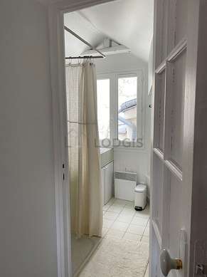 Este apartamento tiene una sala de baño clara with ventanas doble acristalamiento. Este baño tiene todo lo necesario para su bienestar diario : toallas, estantería, ducha, secador de pelo. El WC está separado de la sala del baño y ubicado en un espacio independiente.