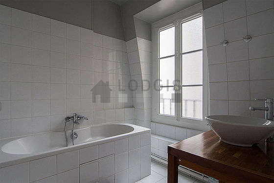Este apartamento tiene una sala de baño agradable y clara with ventanas doble acristalamiento. Este baño tiene todo lo necesario para su bienestar diario : toallas, estantería, bañera, secador de pelo, radiador seca-toallas. El WC está separado de la sala del baño y ubicado en un espacio independiente.