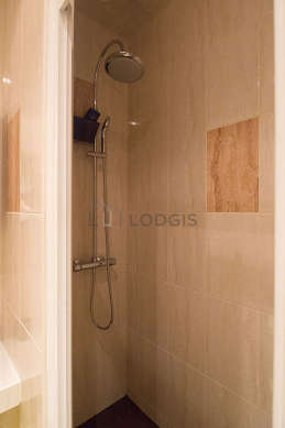 Por un salón con parquet en el suelo y ventanas doble acristalamiento y una vista a al patio. Este salón tranquilo está amueblado y equipado para que su estancia sea agradable : televisor, sábanas, edredones, mesa, mesa de estudio, ropero, estantería, armario empotrado, 1 silla(s)1 sofá cama.