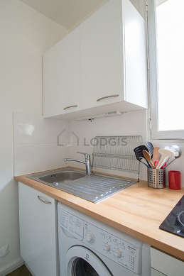 Este apartamento posee una magnífica cocina con azulejo en el sueloy todo el equipamiento esencial para su vida diaria : placas eléctricas, refrigerador, congelador, horno, micro ondas, armario empotrado, vajilla.