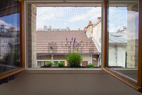 Este apartamento está formado por un salón ventanas doble acristalamiento y una vista a al patio. Este salón tranquilo está amueblado y equipado para que su estancia sea agradable : televisor, sábanas, edredones, mesita, mesa de estudio, ropero, estantería, armario empotrado, 1 silla(s)1 cama.