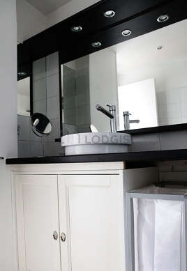 SalónEste apartamento está formado por un salón con parquet en el suelo y ventanas doble acristalamiento y una vista a al patio. Este salón muy tanquilo está amueblado y equipado para que su estancia sea agradable : televisor, sábanas, edredones, mesa, mesa de estudio, ropero, estantería, armario empotrado, 4 silla(s)1 sofá cama, 1 cama.