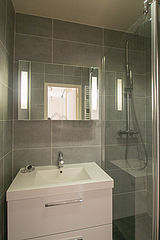 Este apartamento tiene una sala de baño agradable. Este baño tiene todo lo necesario para su bienestar diario : toallas, armario empotrado, ducha, secador de pelo, radiador seca-toallas. El WC está separado de la sala del baño y ubicado en un espacio independiente.
