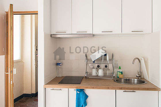 Este apartamento posee una cocinay todo el equipamiento indispensable para su vida diaria : placas eléctricas, refrigerador, congelador, horno, campana extractora, tostador, hervidor, cafetera, estantería, armario empotrado, vajilla.