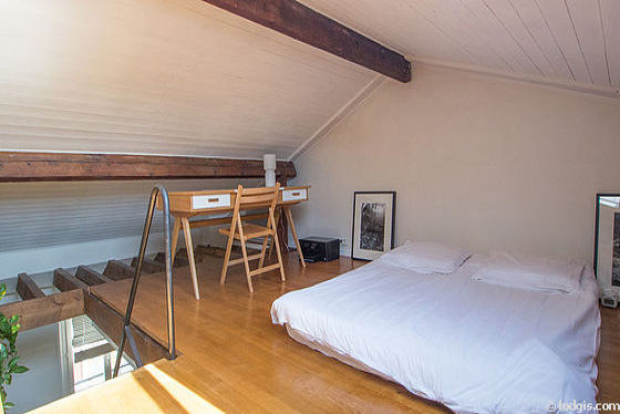 Con parquet en el suelo y ventanas esta habitación acogedora y espaciosa ofrece el equipamiento necesario para descansar durante su estancia : mesa de estudio, ropero, biblioteca, armario, aparador, 1 silla(s)1 cama.