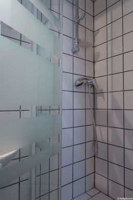 Este apartamento tiene una sala de baño clara. Este baño tiene todo lo necesario para su bienestar diario : ducha, radiador seca-toallas. El WC está separado de la sala del baño y ubicado en un espacio independiente.