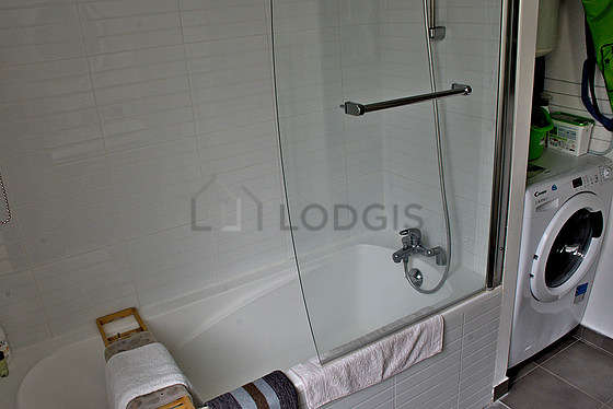 Este apartamento tiene una sala de baño magnífica y muy clara with ventanas doble acristalamiento. Este baño tiene todo lo necesario para su bienestar diario : toallas, estantería, armario empotrado, bañera, radiador seca-toallas. El WC está separado de la sala del baño y ubicado en un espacio independiente.